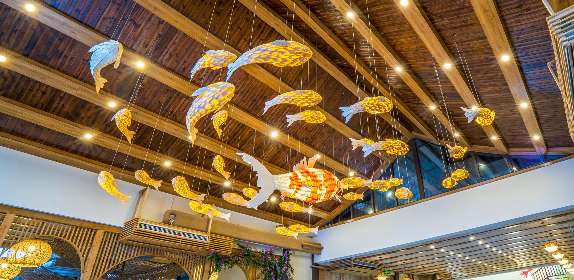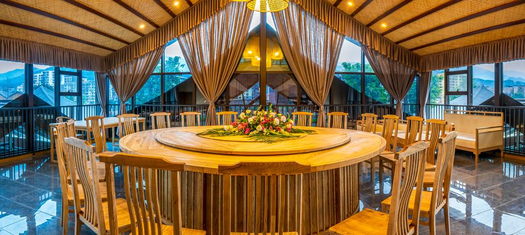 그 장면은 아름다운 생태뿐만 아니라 더욱 조용하고 쾌적하며, 대나무 뗏목, 호수 중앙, 나무집, 숲 사이, 정자에서......모두 샤브샤브를 먹을 수 있으며, 동시에 호수 중앙에 분수와 무대를 설치하여 밤의 백하원, 조명 쇼, 무대 쇼, 분수 쇼가 서로 호응한다.